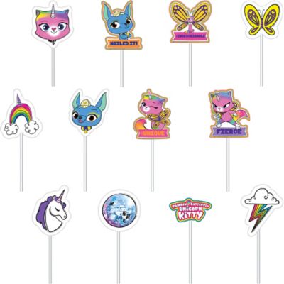 Rainbow Butterfly Unicorn Kitty Cake Toppers 12ct Party City