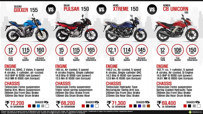 Honda Cb Unicorn 160 Vs Suzuki Gixxer Vs Bajaj Pulsar 150 Vs