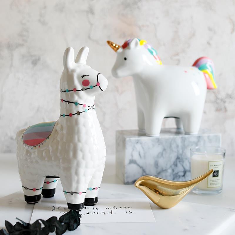 Nordic Ceramic Unicorn Piggy Bank Cartoon Animal Coin Bank Money