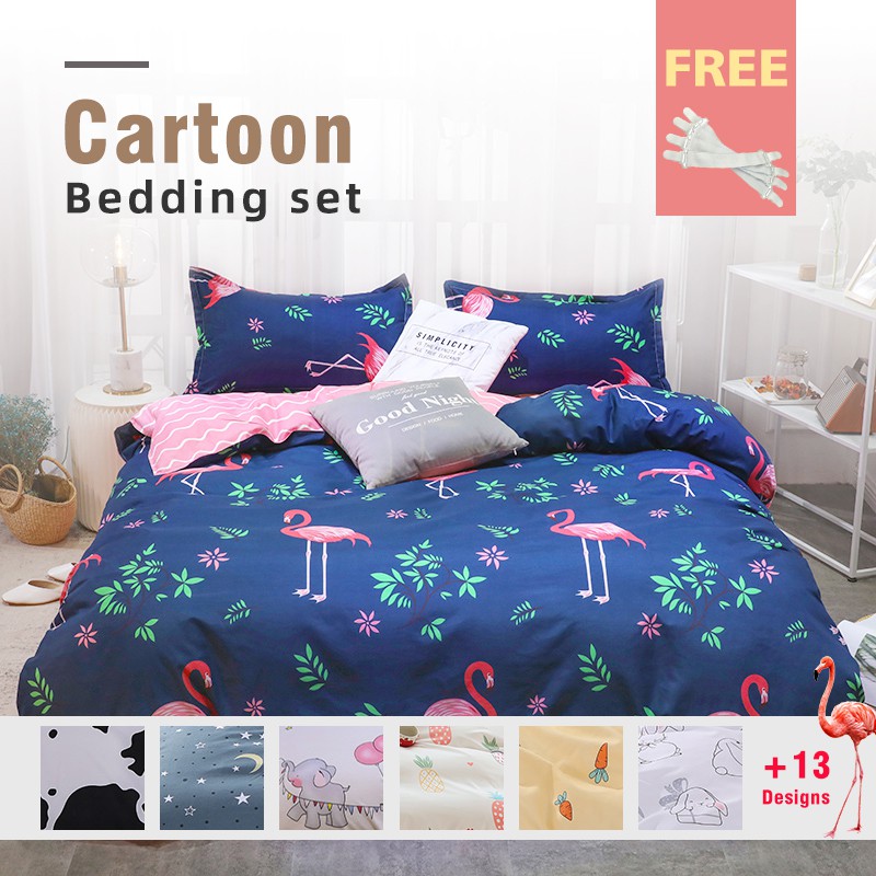 Flamingo Unicorn Bed Sheet Set Cartoon Duvet Cover Single Queen