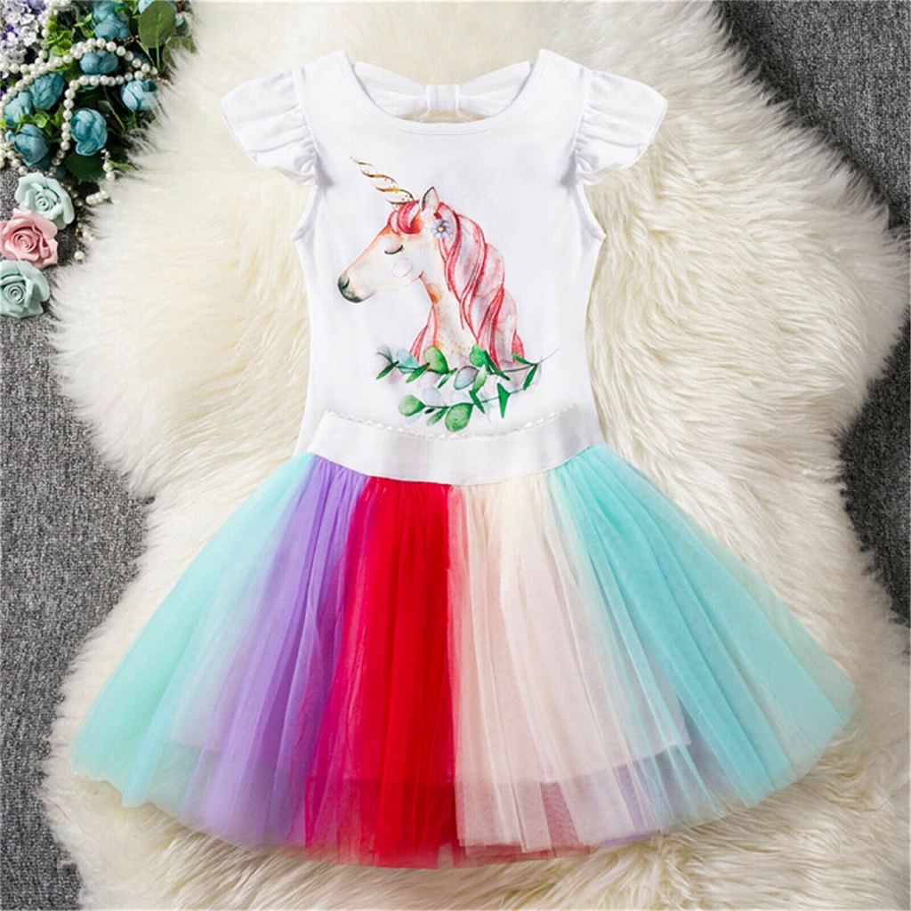 Girls Tutu Skirt Dress Rainbow Unicorn Birthday Wedding Party