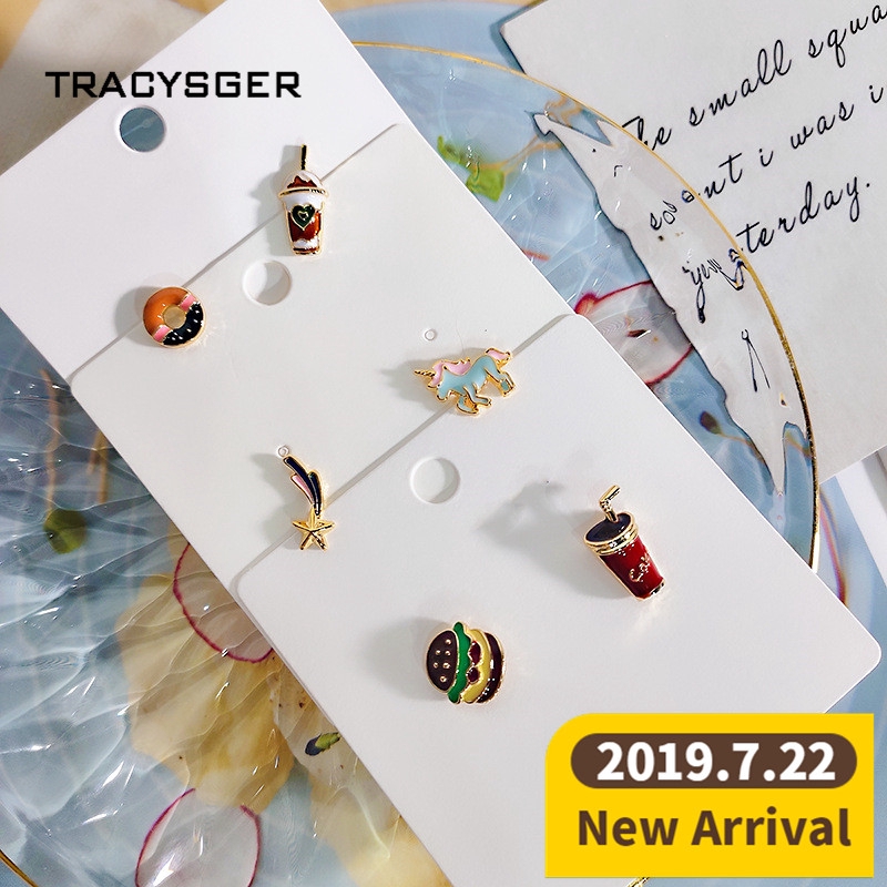 S925 Silver Needle Children S Fun Hamburg Coke Donuts Star Unicorn