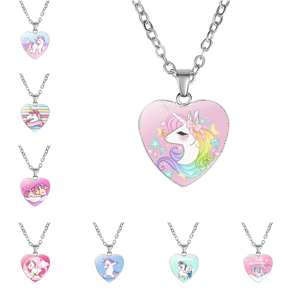 Candy Children S Cute Unicorn Heart Shaped Pendant Necklace