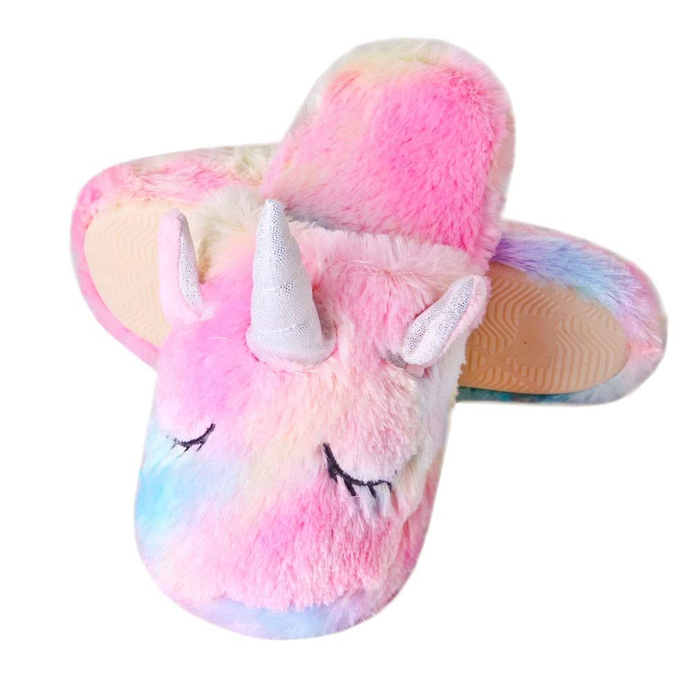 Soft Kids Girls Womens Fluffy Indoor Plush Unicorn Shoes Children
