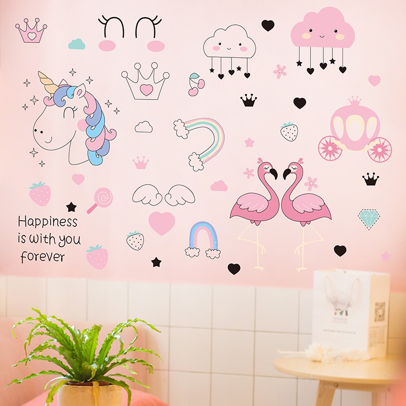 Children S Room Cartoon Unicorn Wall Sticker Wallpaper Wall