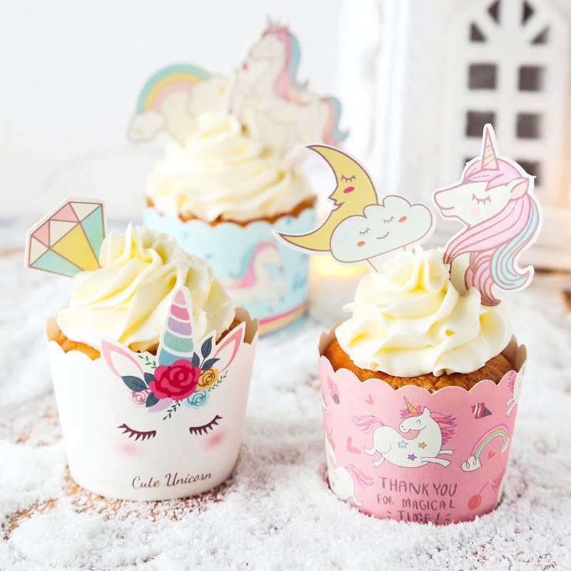 Unicorn Cakes Cards Toothpicks Cards Happy Birthday Baby Party