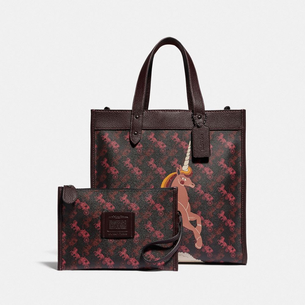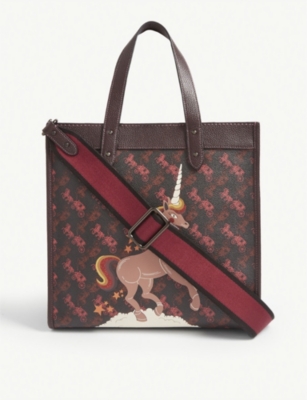 Coach Field Tote With Horse And Carriage Print And Unicorn Bag