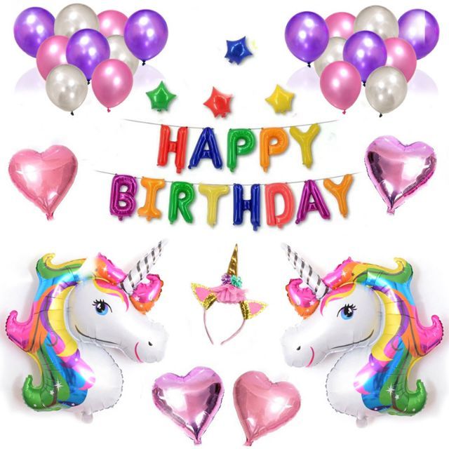 Ready Stock Twins Colorful Unicorn Happy Birthday Foil Balloon