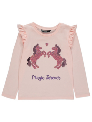 Pink Swipe Sequin Unicorn Long Sleeve Top Kids George