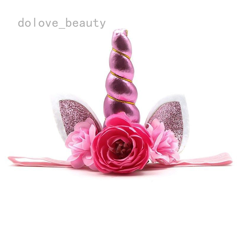 Beauty Hot Baby Girl Flower Cloth Unicorn Horn Hair Headband For