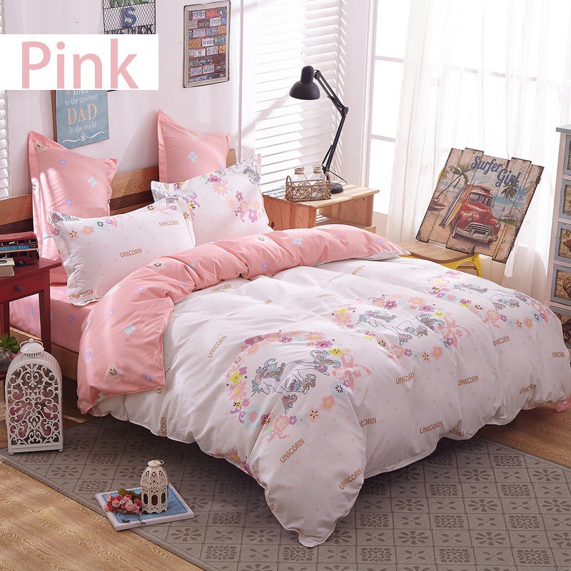100 Cotton Kids Girls Pink Twin Queen Unicorn Bedding Set King